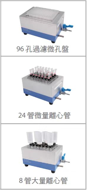 獨(dú)特設(shè)計(jì)的離心管轉(zhuǎn)置板以及魯爾(Luer)接頭,讓W(xué)elVac真空純化裝置成為一個(gè)高兼容的平臺(tái),適用各種樣式的離心管及96孔過(guò)濾微孔盤。